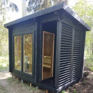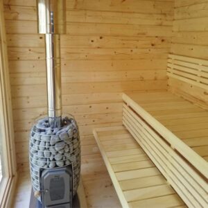 - Complete sauna from Scandinavian spruce. Not treated. Unassembled, flat pack.